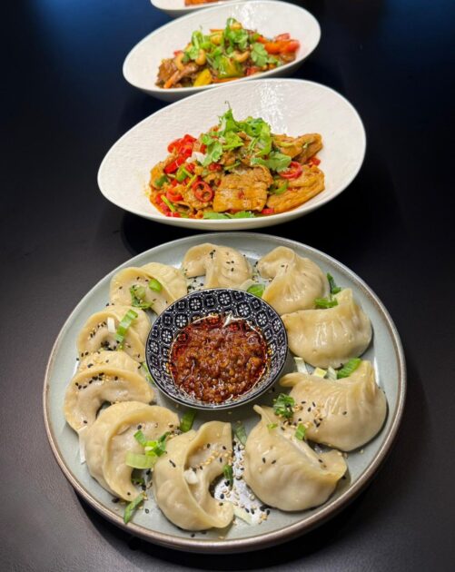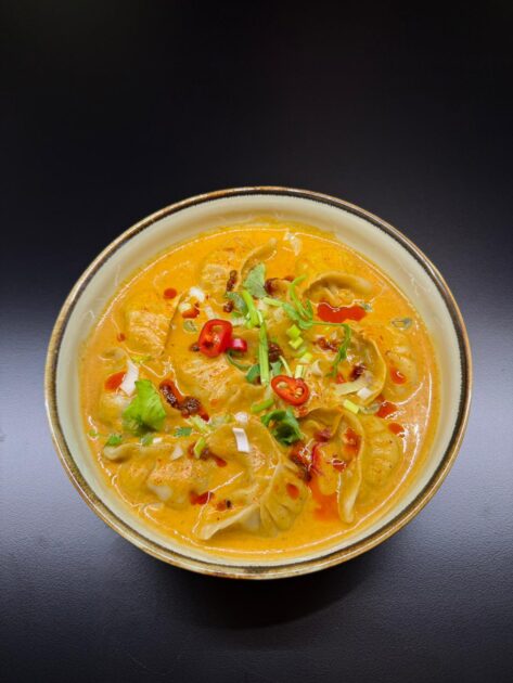 Momos, Ramen, tibetische Nudelsuppen & Szechuan Spezialitäten auch viele vegane Gerichte.